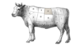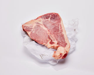A T-bone steak comes from the beef loin and is known for its distinctive "T" shape, which is created by a T-shaped bone that separates two cuts of meat—the larger strip steak (New York strip) and the smaller tenderloin (filet mignon). The strip steak is on one side of the bone, and the tenderloin is on the other.